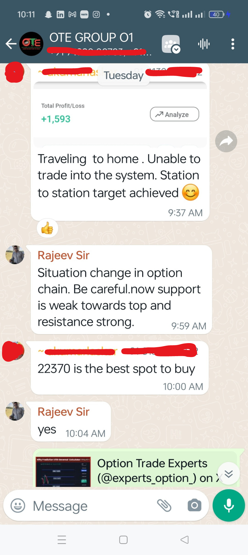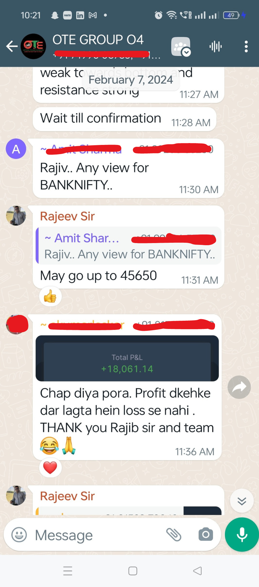 Excellent prediction and guidance provide by OTE Team.The way of reversal calculator usage and Rajeev Sir's coaching made the trading much more easier.Surely recommended.