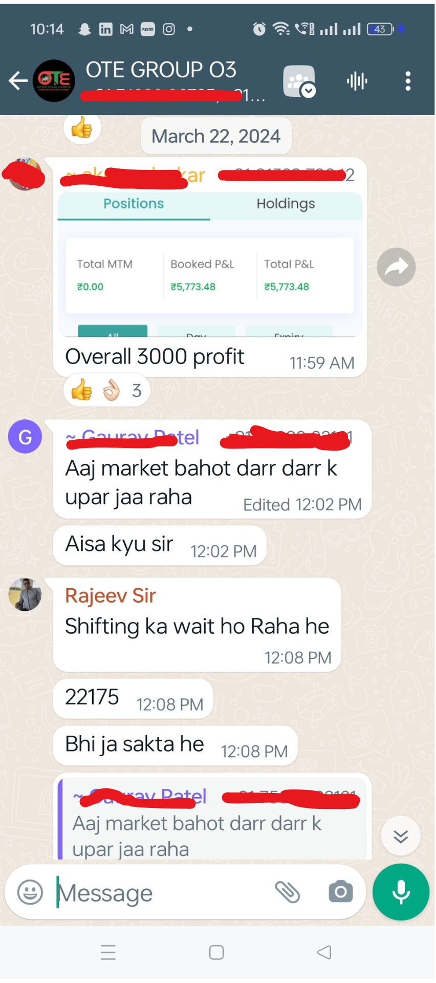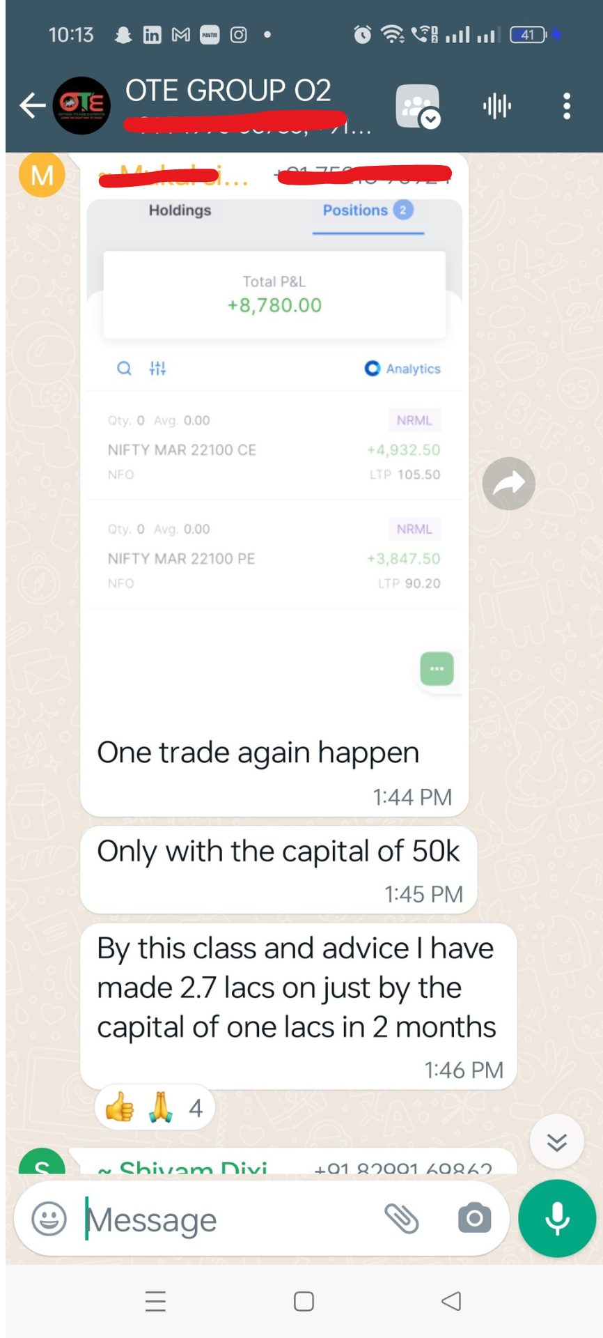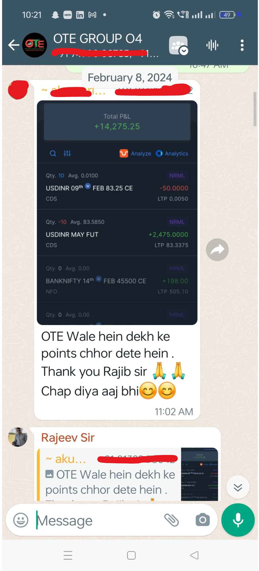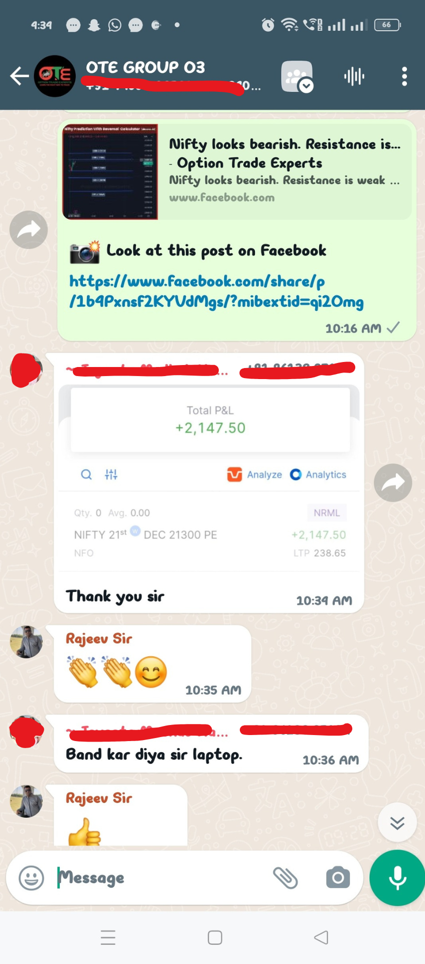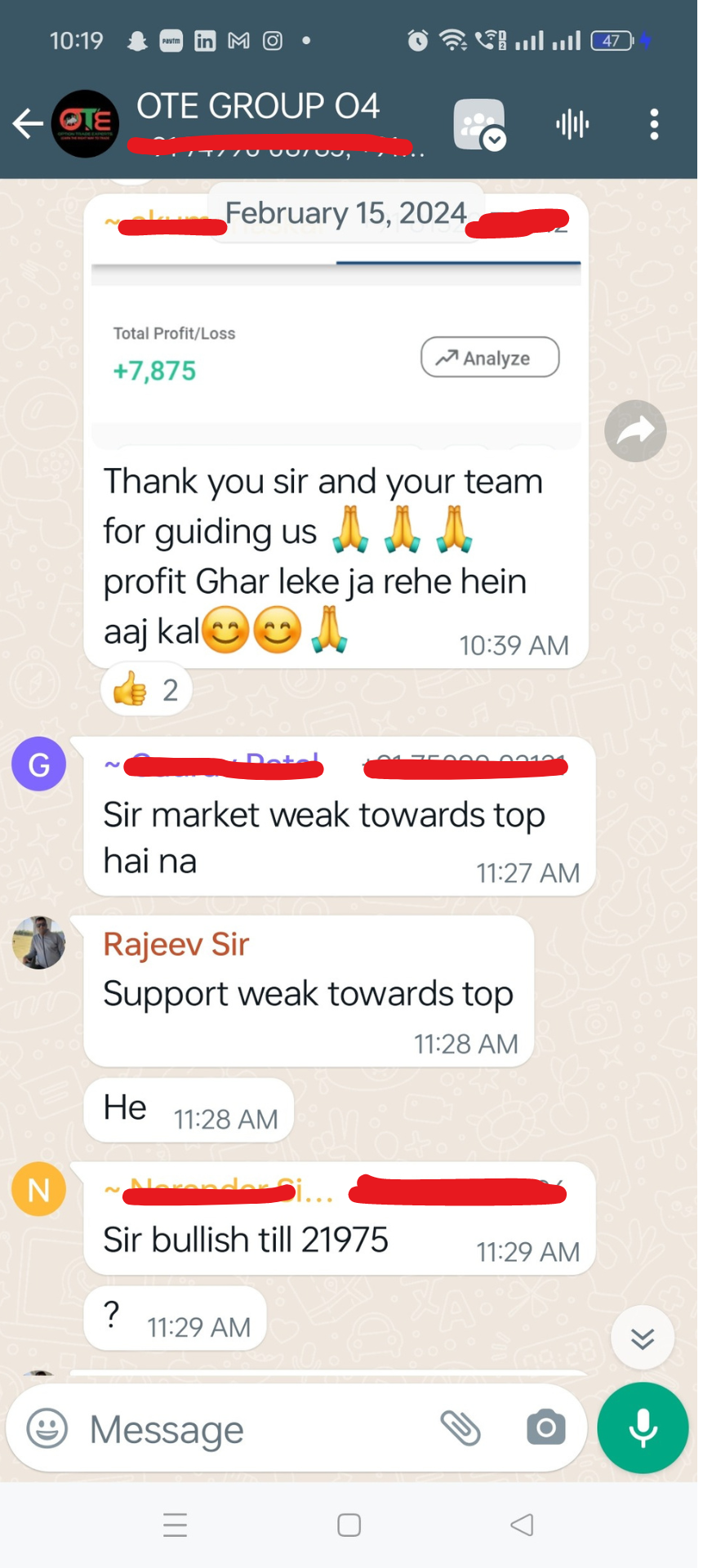 Excellent prediction and guidance provide by OTE Team.The way of reversal calculator usage and Rajeev Sir's coaching made the trading much more easier.Surely recommended.