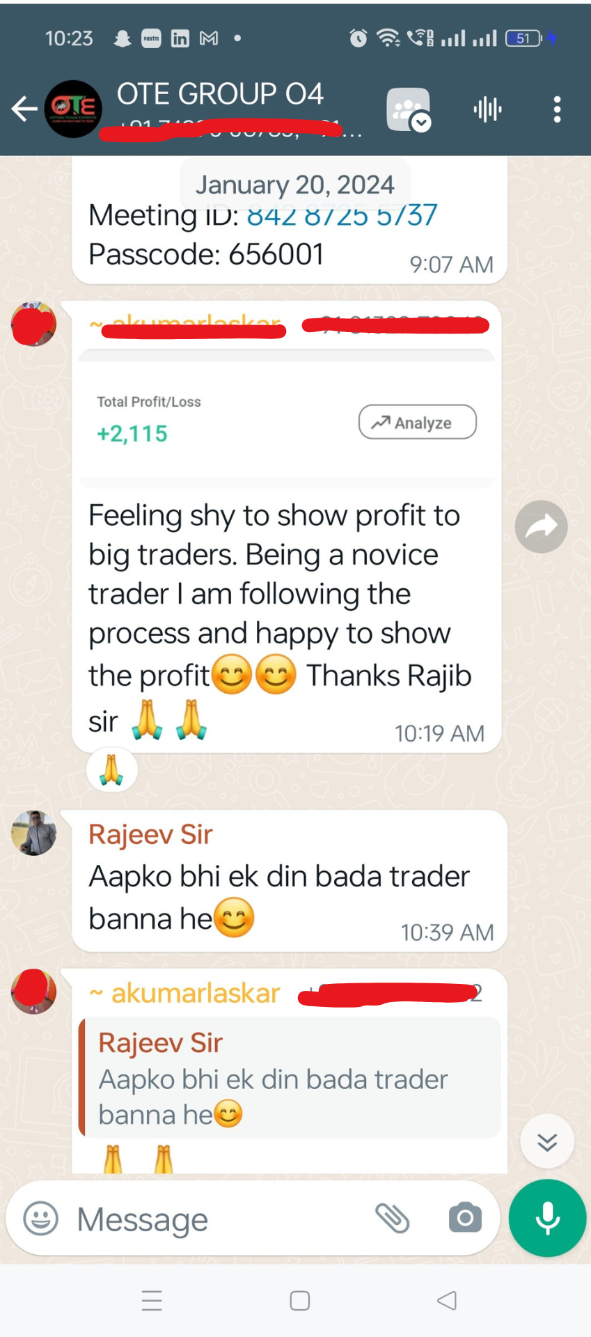 Excellent knowledge and skills of Mr. Rajeev sir, helped me a lot towards improving my trading knowledge. Thanks for creating such a great platform where we can learn from you. Live market sessions help us to improve. Thanks a lot Rajeev sir for being our mentor.